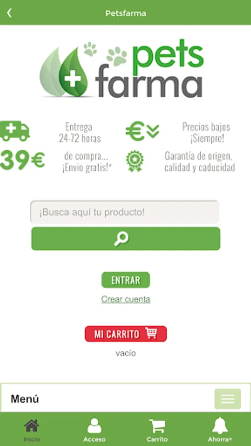 The APP of animal and veterinary pharmacy online store Petsfarma allowed to buy veterinary products throughout the country at the best price thanks to agreements with leading veterinary laboratories market with confidence and maximum security.
