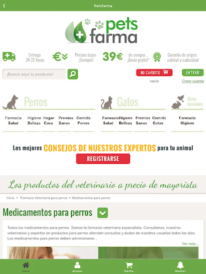 Discover and veterinary pharmacy APP Petsfarma, much more than an online store animals with the best prices!