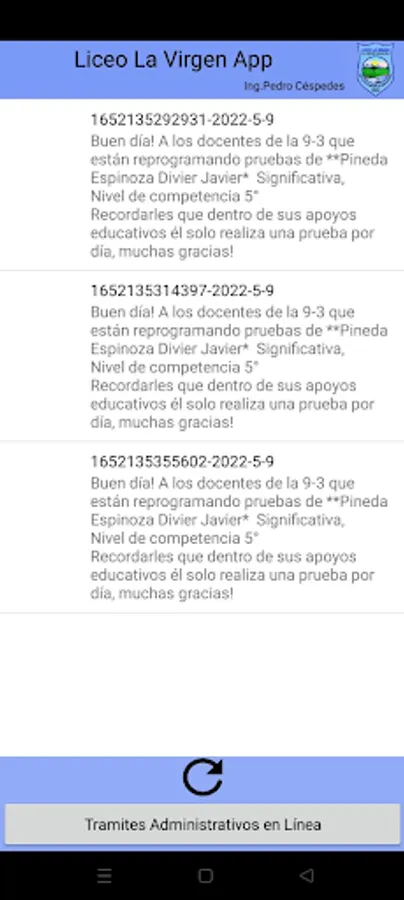 This application informs parents of possible eventualities of the Liceo La Virgen, to make access to information easier