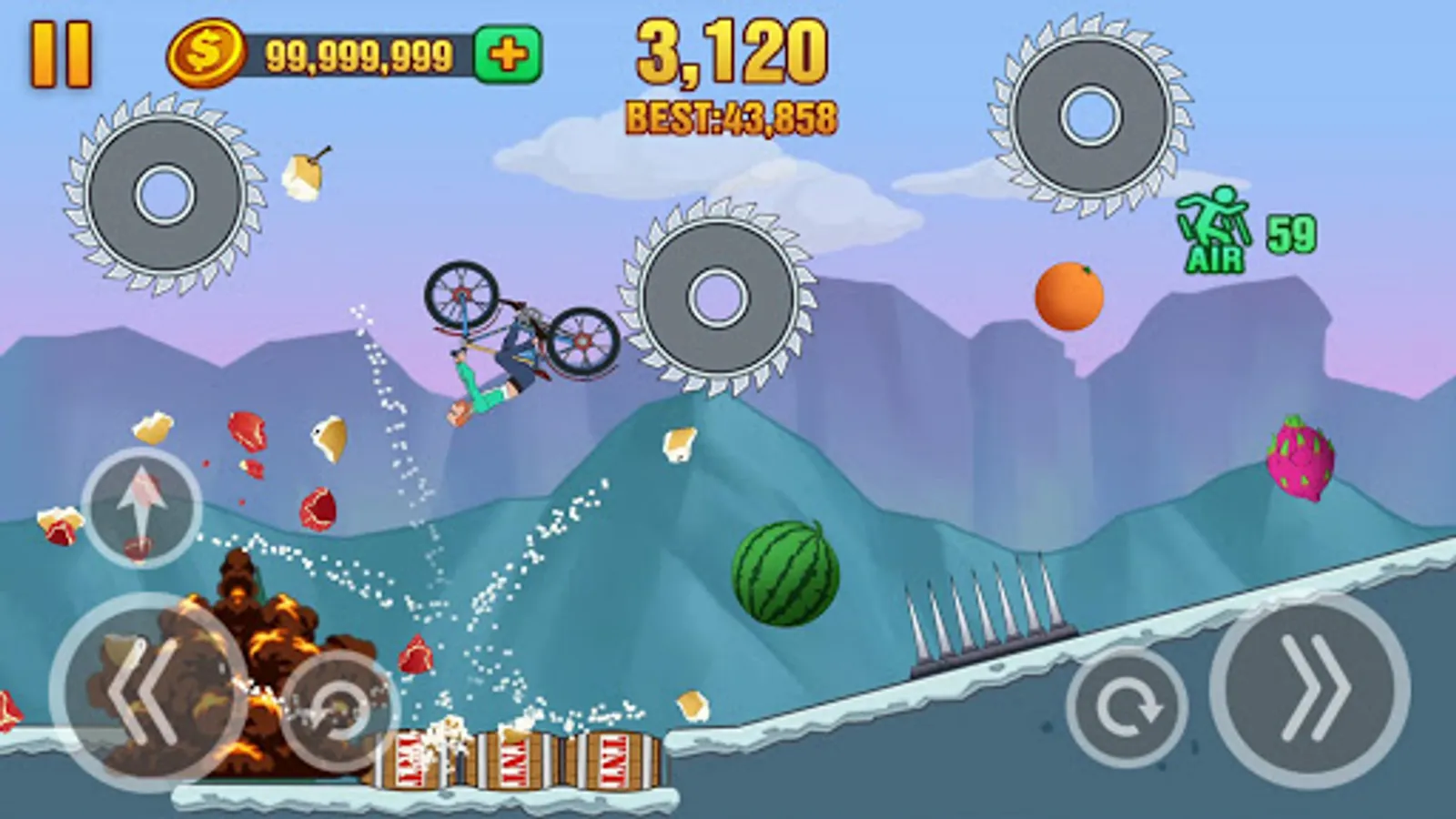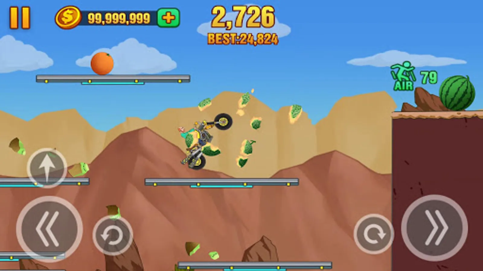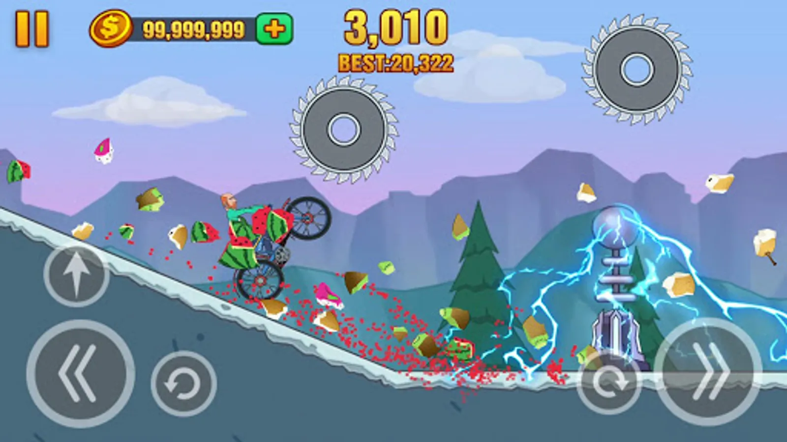 Hills Mount lets you assume the role of an inadequately prepared racer and you are not allowed to stop! Drive as fast as possible, perform death-defying stunts, smash all the fruits on the road in a desperate search for victory!