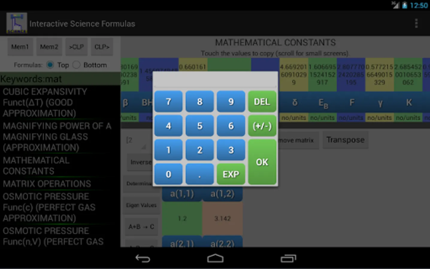 This is a free version of "Science Formulas PRO", if you want the ad free version and more features search in the android store for "Science Formulas PRO".