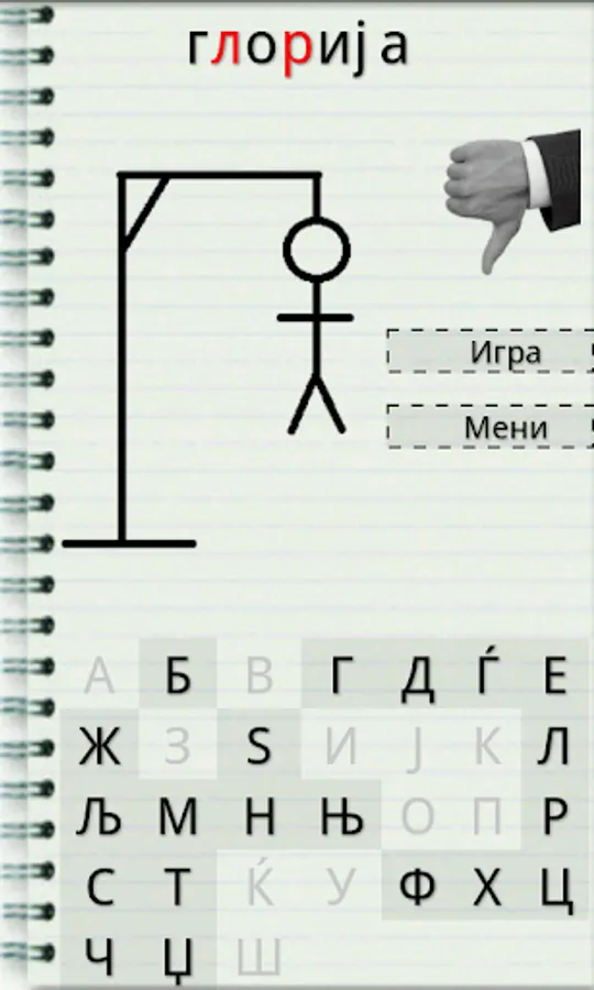 Gallows. Funny and entertaining igra.Pogodete the secret word in Macedonian, with 3 levels of difficulty.