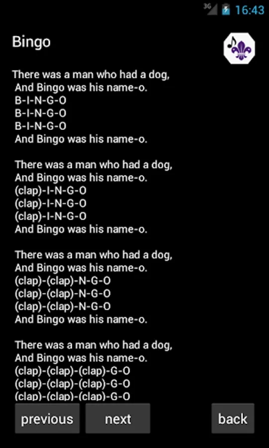 The perfect app for any up to date Scout Leader or scout member that wants to sing around a campfire. This app, unlike some others on the market, offers the ability to view lyrics of a campfire song without the need of an internet connection as well as hearing singing of the songs, courtesy of Philip Harlow.