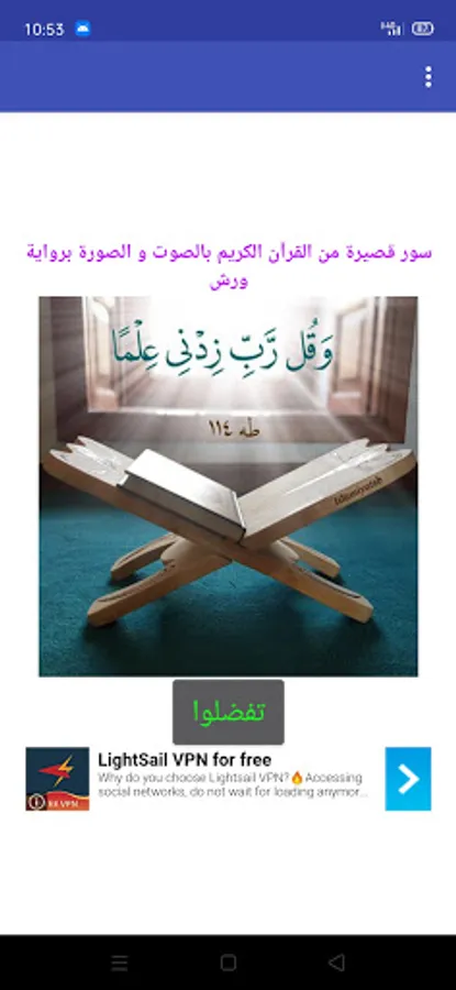 تطبيق القرآن بدون أنترنيت تطبيق يحتوي على سور قصيرة من القرآن الكريم عددها عشرون سورة تهدف تسهيل و تيسير القراءة و الاستماع في نفس الوقت .