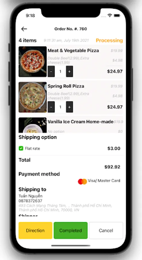 ★ The delivery boy can either Confirm or decline the new order assigned to him.