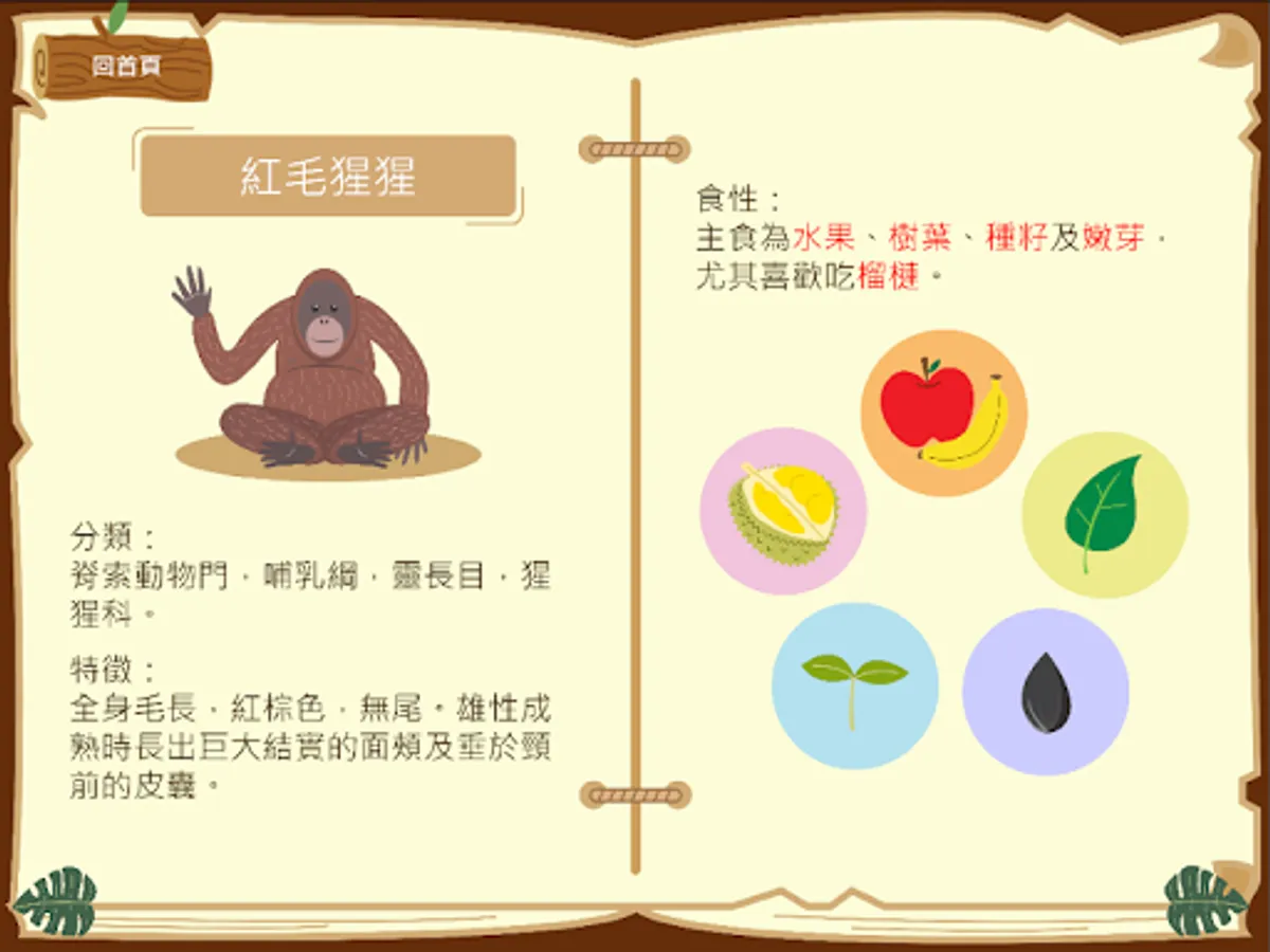 畫等,為學習者展示幾種熱帶雨林動物的特色以及食性。到底,熱帶雨林裡藏著