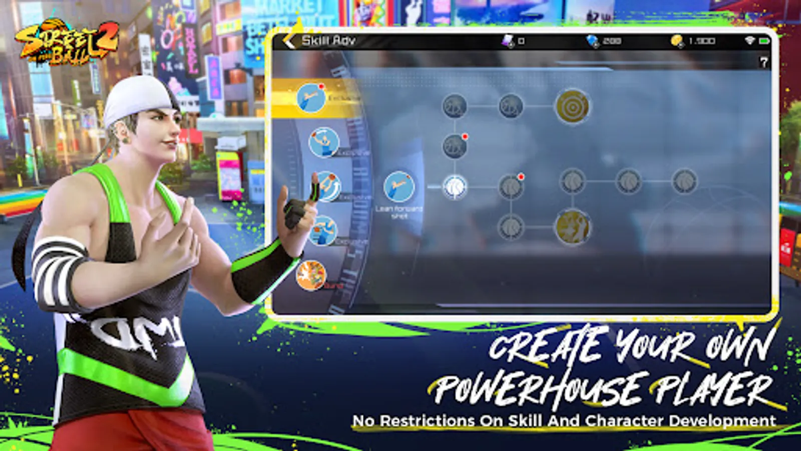 Choose and mix from five basketball positions as you like, and select from a wide range of players from different countries who are waiting for your selection. Based on the latest technology in 3D modeling, every game is more realistic than ever before! Customize the abilities and personalities of your streetball players, and create your own exclusive player according to your preferences.