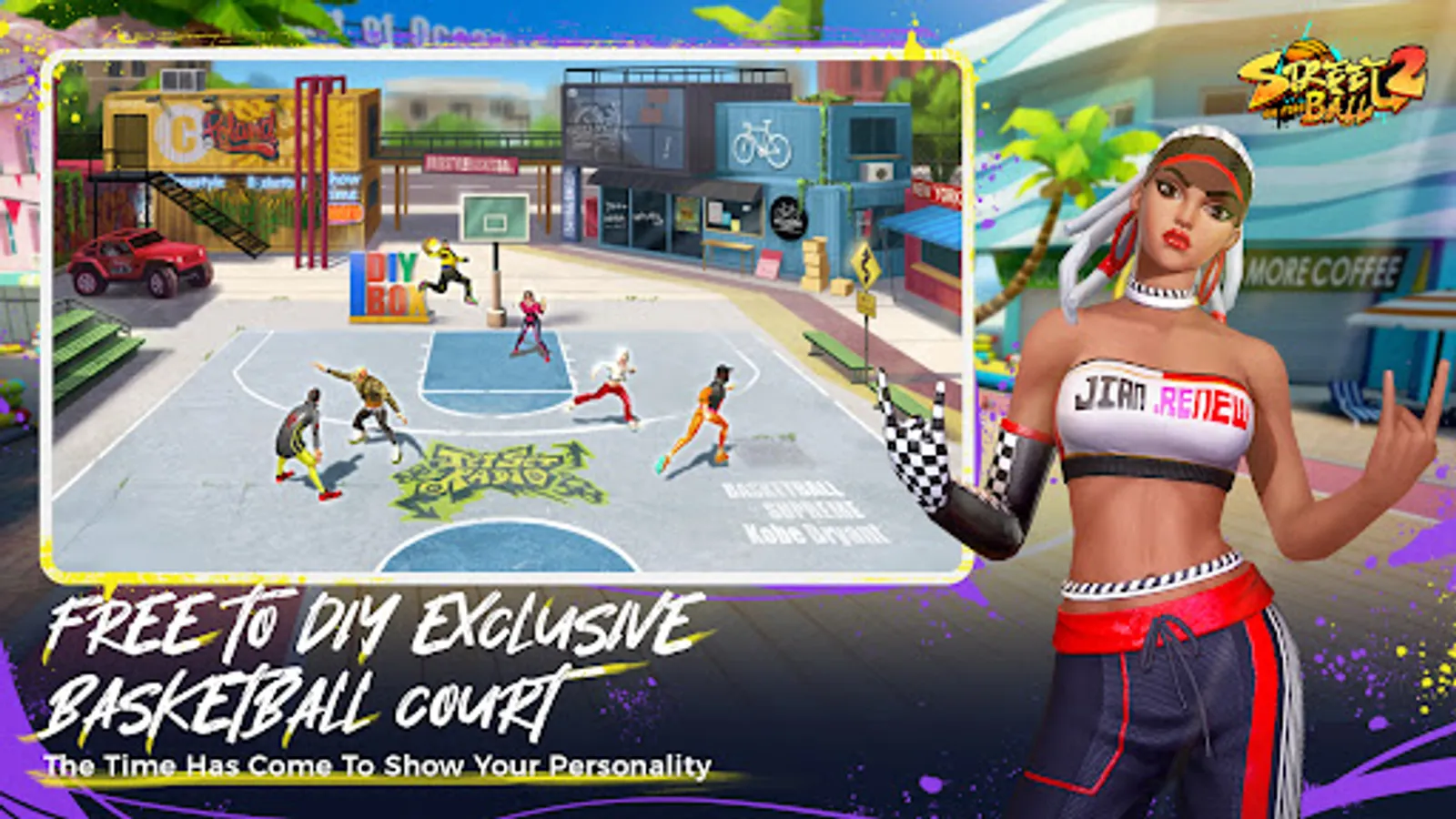 Featuring world-renowned street basketball courts (such as Sunset Dongdan, Rucker Park, etc.), as well as a court DIY gameplay, every detail and graffiti decoration on the court can be created and designed freely by you, showcasing your unique and creative charm.