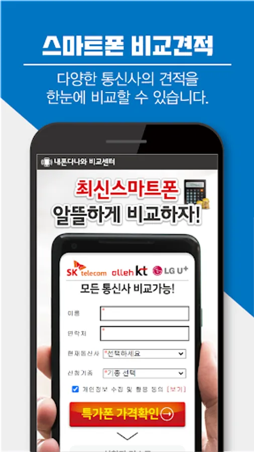 We provide the latest smartphone quotation service for major domestic telecommunications companies SK Telecom, KT Olleh, and LG U+.