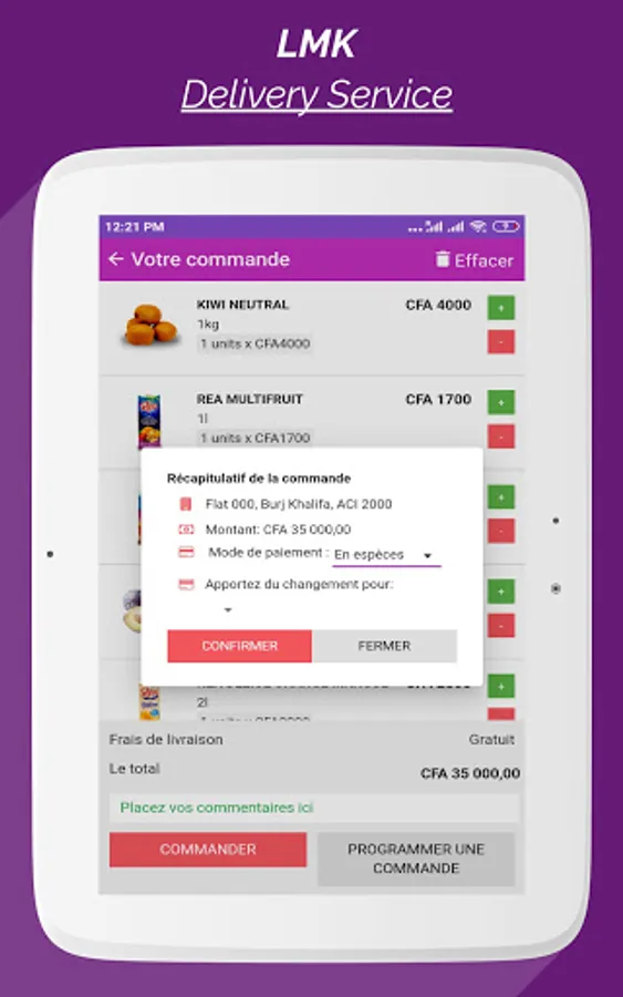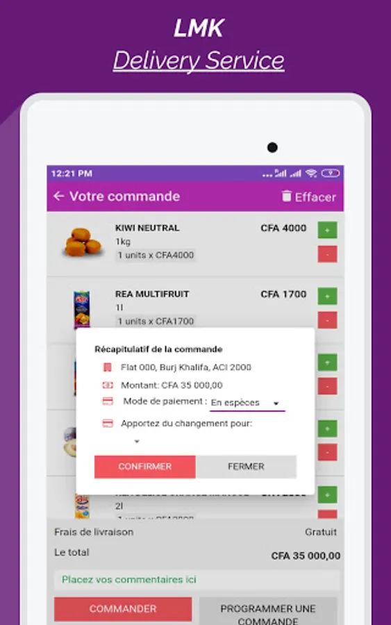 Order whatever you want on LMK and your delivery will be immediate! What would you like to order? Meat? Milk? Rice? Fruits ? Order on LMK and have it delivered throughout Bamako!