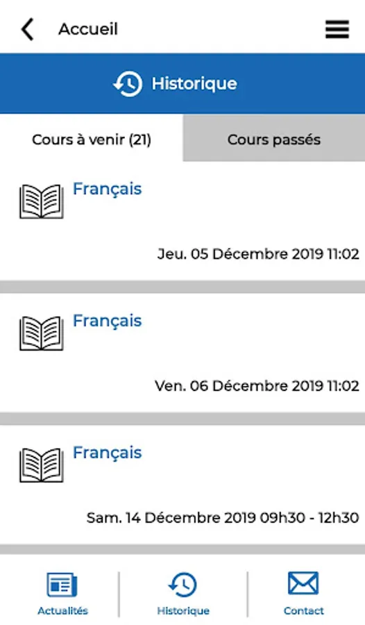 The application "Study Plus" offers you the opportunity to view all the useful information (Courses, Activities, Facebook, ...) but also to book on the application and receive their latest news in the form of push notifications.