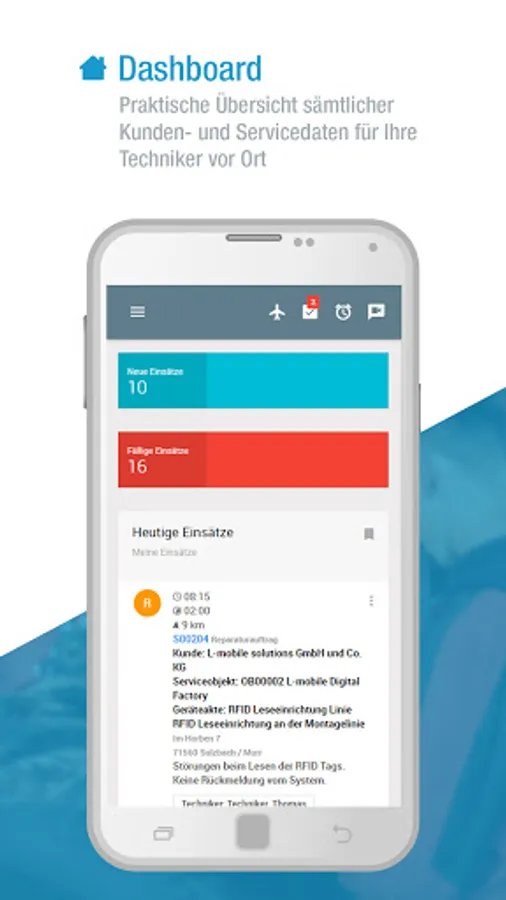 As part of L-mobile service, our software for service calls, the service app, like the desktop version, can be used both on-premises and cloud-based as Software as a Service (SaaS). This makes the app a tool for efficient service management.