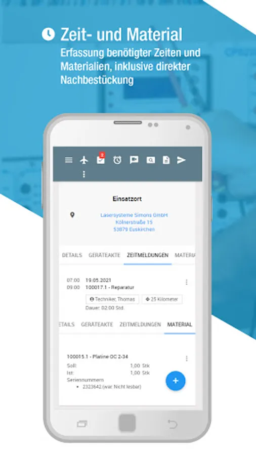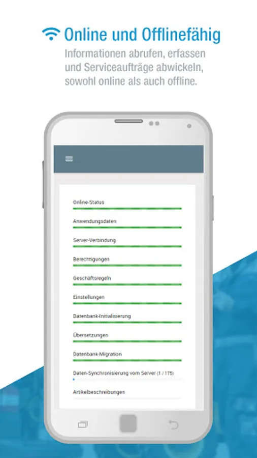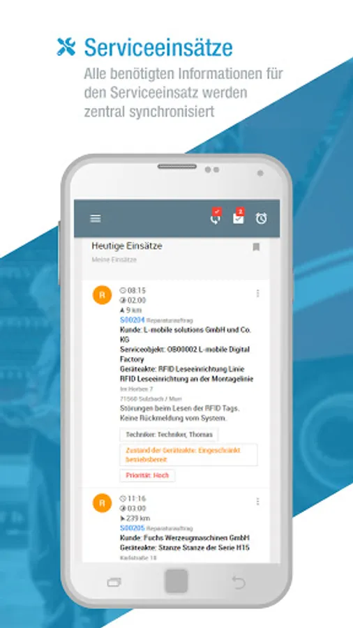 As soon as your service technician can connect the service app to the Internet again, the mobile service order and all recorded data are synchronized for use and transferred back to your ERP system.