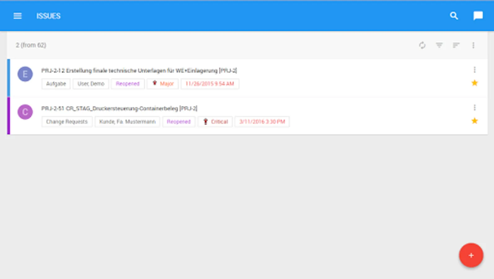 The application starts with an access to our demonstration environment, and can be adjusted through the settings to your own environment.
