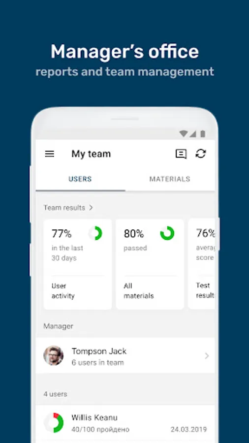 ⁃ Are you a manager? Publish and discuss team news right from the app, give out awards and check training progress of your team