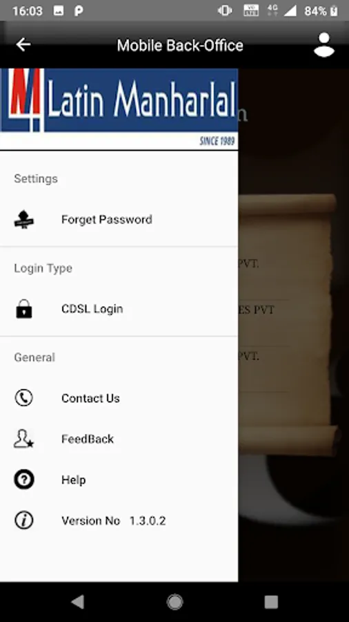 Latin Manharlal BO is Latin Manharlal's official back office mobile application. The application enables clients registered with Latin Manharlal to connect with Backoffice to track the leisure account in Indian Equity, Derivatives, Commodities and Currency markets.