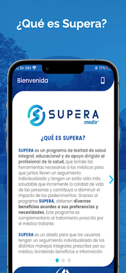 SUPERA is a comprehensive, educational, and supportive health loyalty program aimed at health professionals, which provides the necessary tools to doctors so that together they can carry out individualized follow-up and have a healthier lifestyle that increases the quality of life of people and help reduce the impact of illnesses. Thanks to the SUPERA program, they obtain various benefits according to their preferences and needs. This program is complementary to the treatment prescribed by the attending physician.