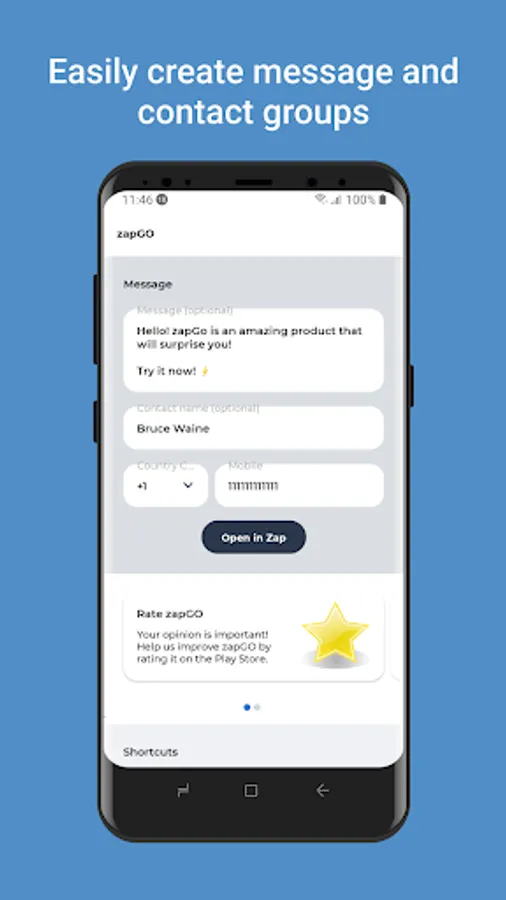 Say goodbye to the traditional way of adding contacts to your address book just to send a message on WhatsApp. Experience the power of zapGO and simplify your WhatsApp messaging today!