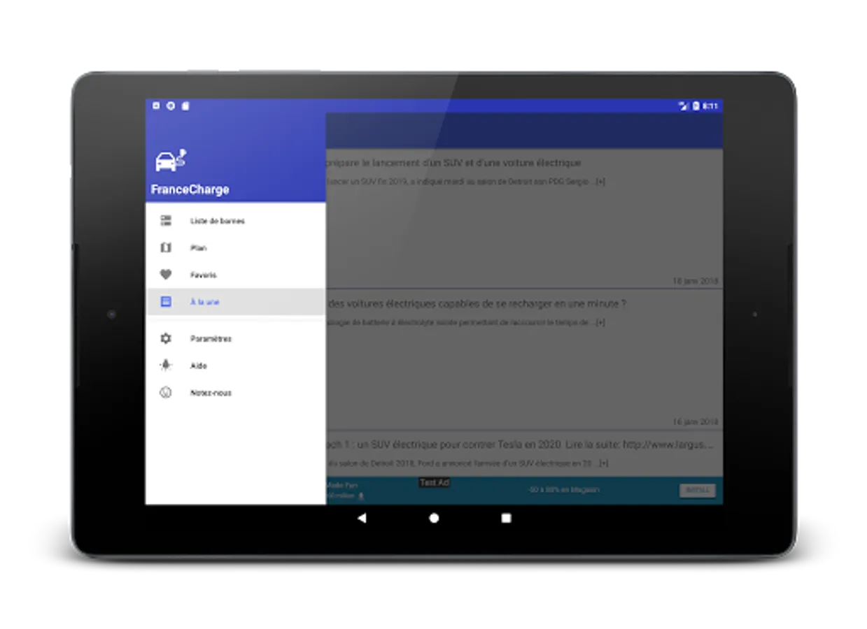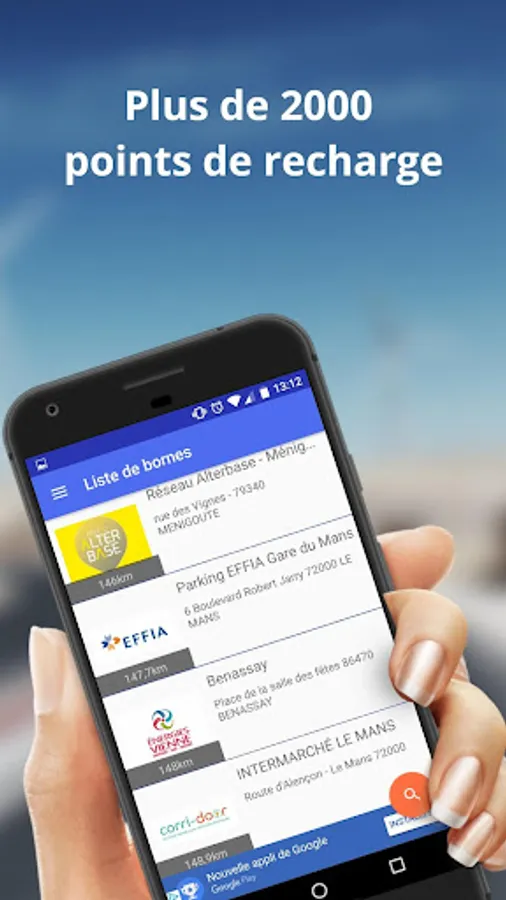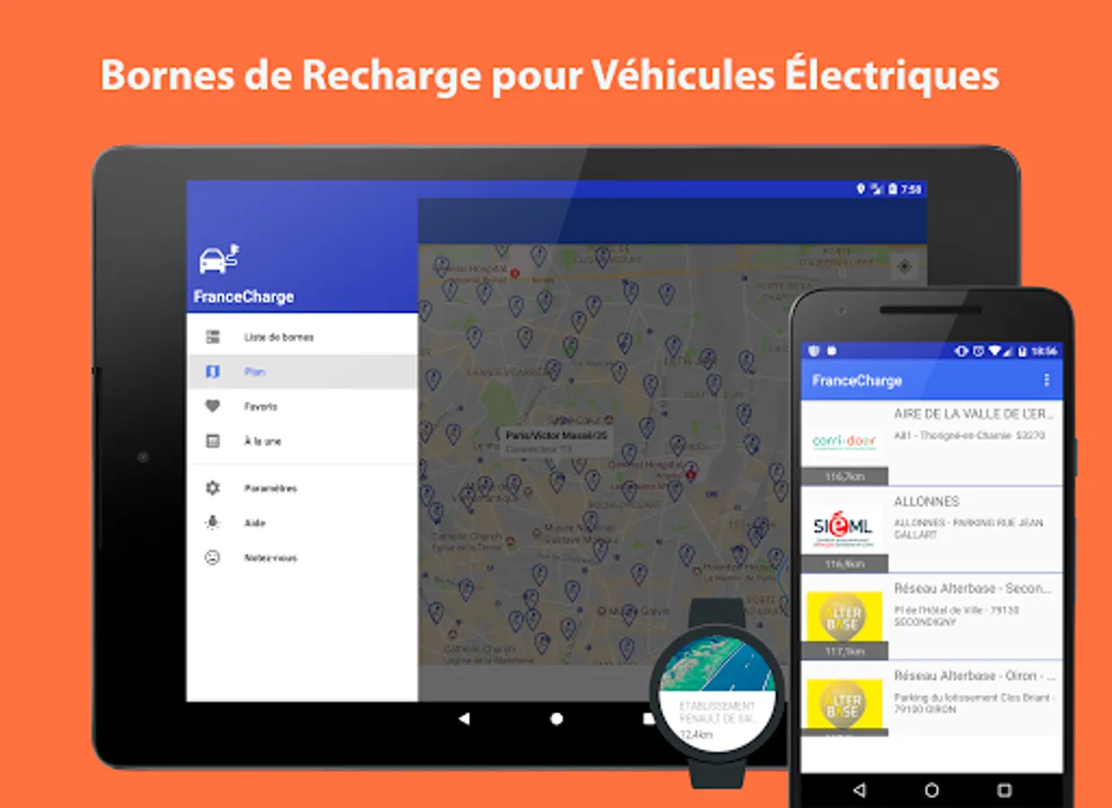 The FranceCharge application allows you to access over 2,000 terminals to recharge your electric vehicle throughout France. Plug types, speed and more: all the information in the app.