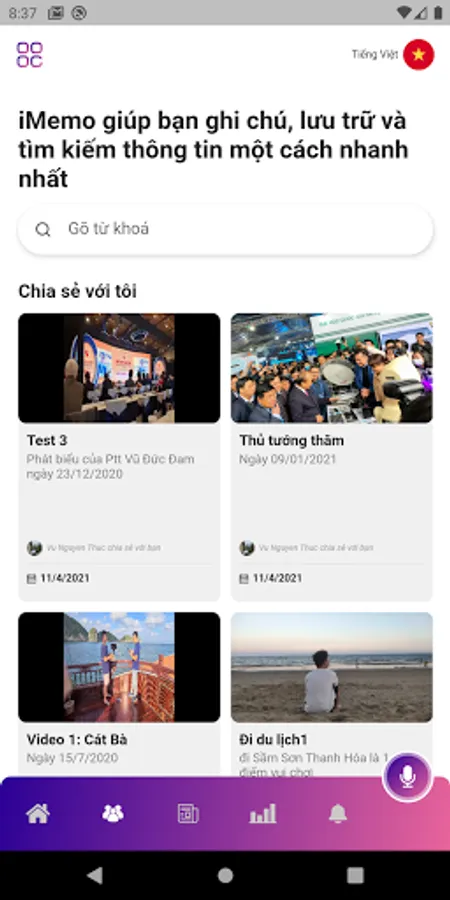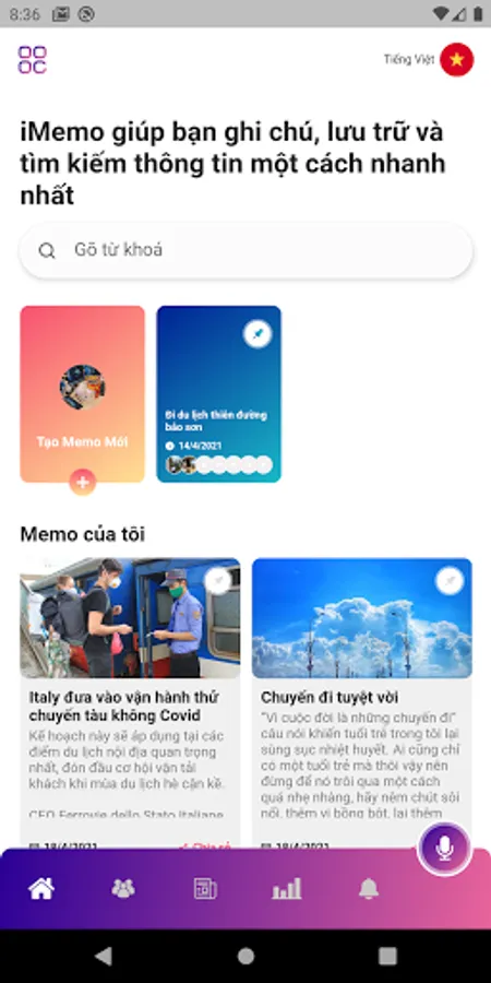 + Take quick notes/create content (memo) in many forms: type text directly, convert dialogue into text, convert a link into note content, ..;
