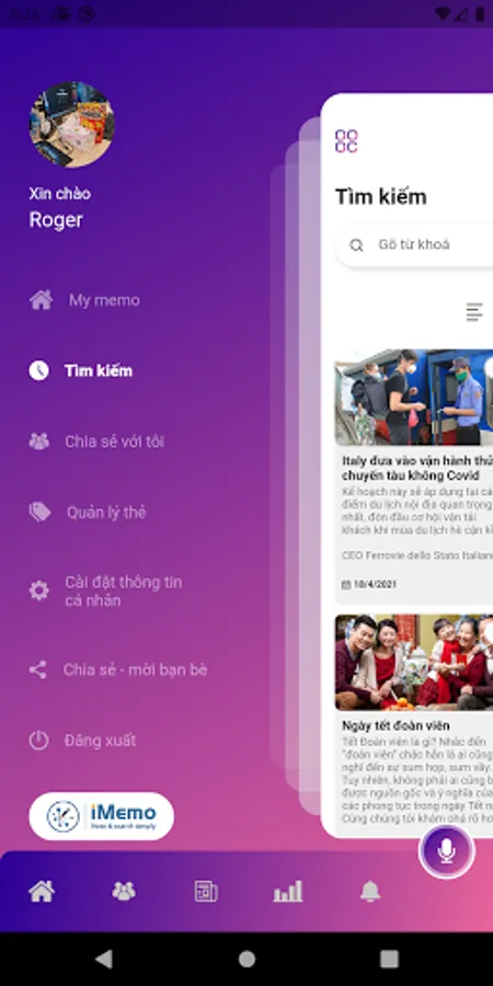 - Transfer (share) the content of the memo to 1 user in other platforms (Zalo, Viber, Messenger,...);