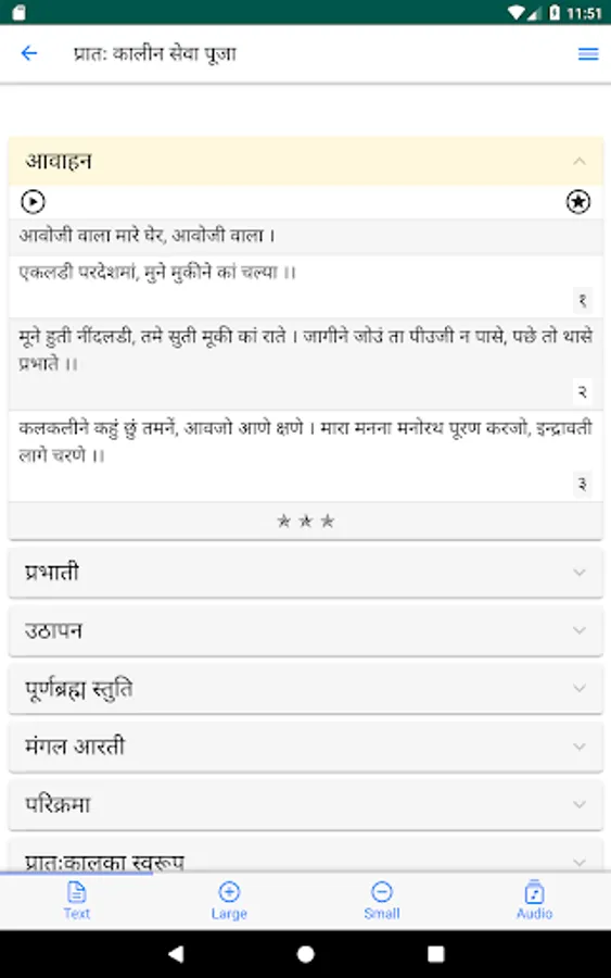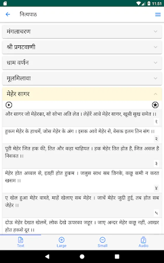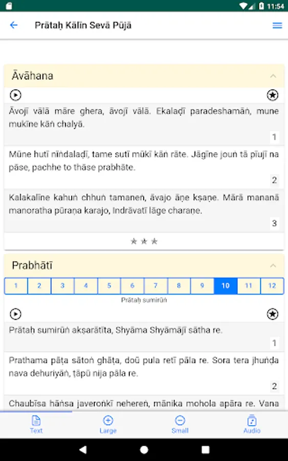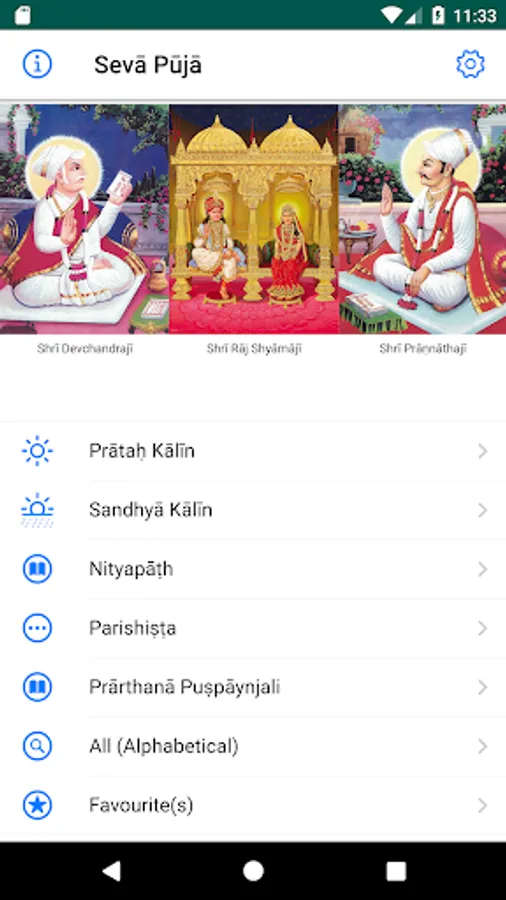 This app contains Shree Krishna Pranami Nijananda Sampradaya's morning and evening Seva Puja including Nityapath. Most of the text is taken from ‘Seva Puja Gota’ published from Shree Navatanpuri Dham, Shree Padmawatipuri Dham and few other books. The text is in Hindi, Gujrati and Roman-English.