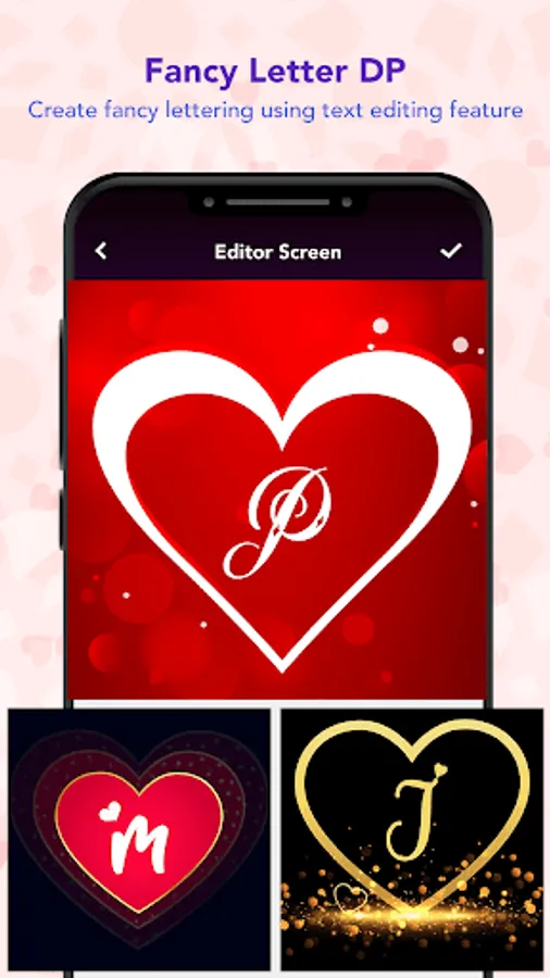 Love name letter DP maker app gives a huge collection of stylish fonts style and lovely hearts. You can set your name letter or your loved letter as wallpaper and DP. Stylishly created name letter DP profile can be shared on the social media platform.