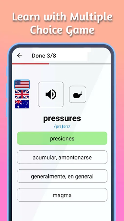 But that's not all! Flamlingo: Learn English also provides three exciting real-time games to help you practice and reinforce your English skills: