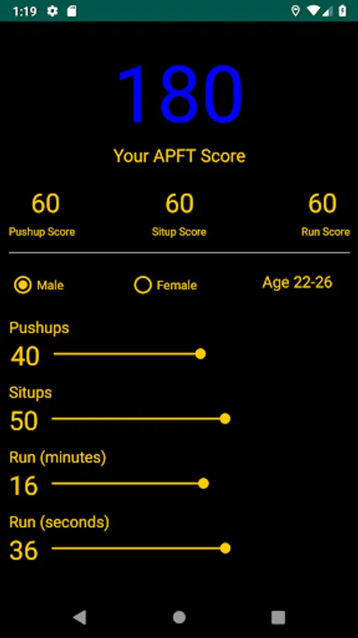 APFT Score Calculator Screenshots