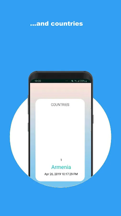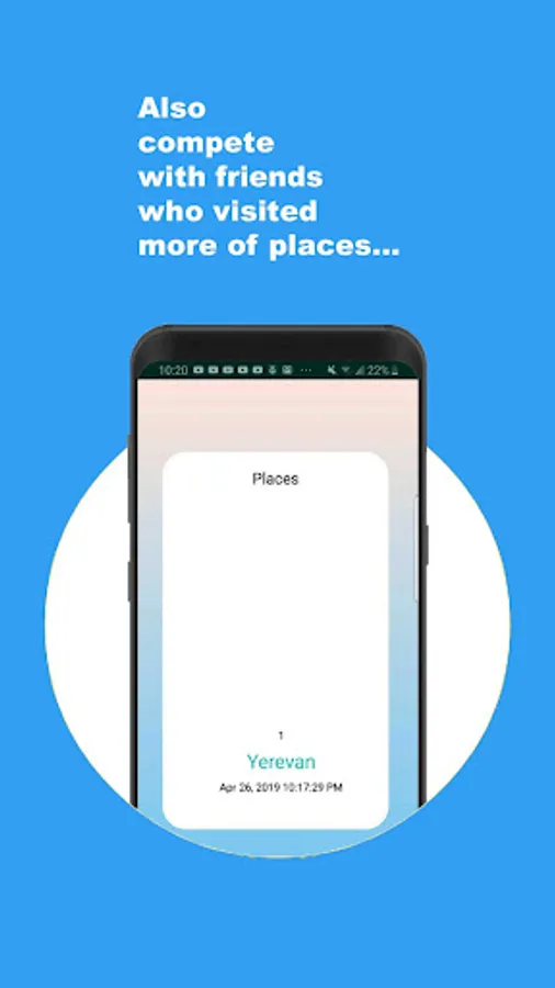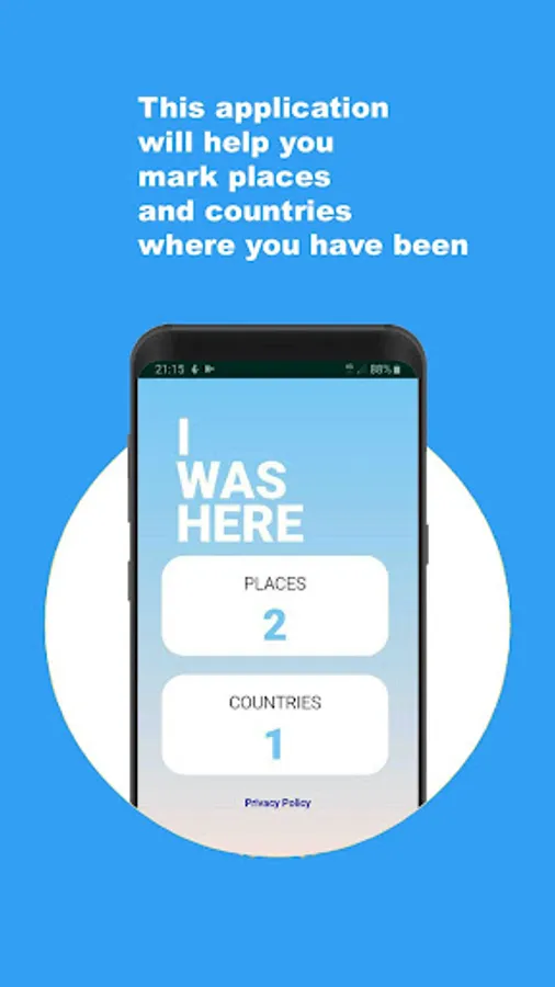 I was here will count the number of places and countries, and will show them in a list together with a time and date of the first visit.