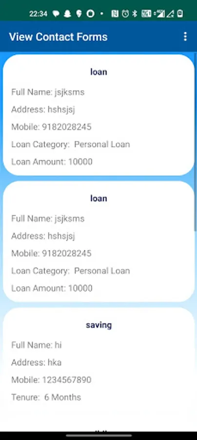 Contact Forms added for Loans, CA Services, CIBIL, Engineer Services