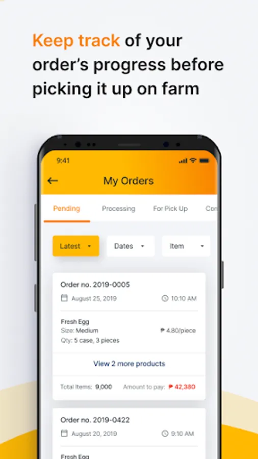 - Keep track of your order’s progress before picking it up on farm.