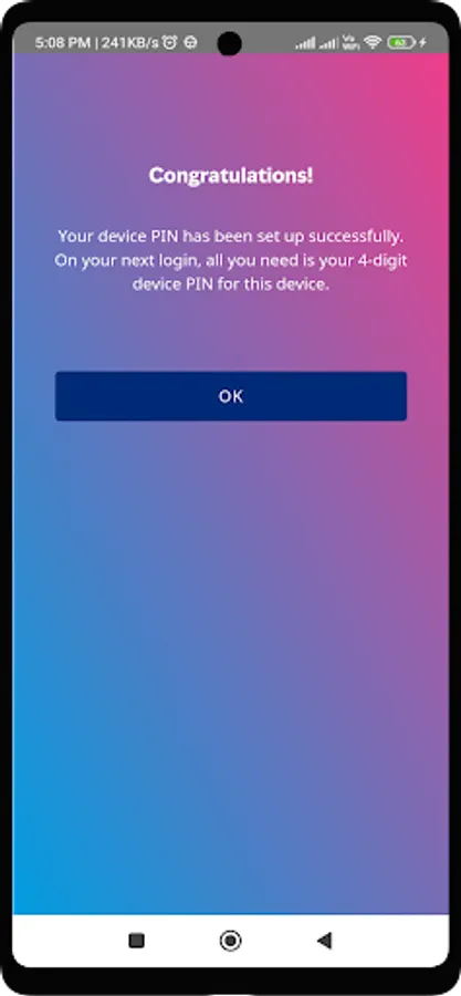 • Create your own 4 digit device PIN – no need to remember your website login details.