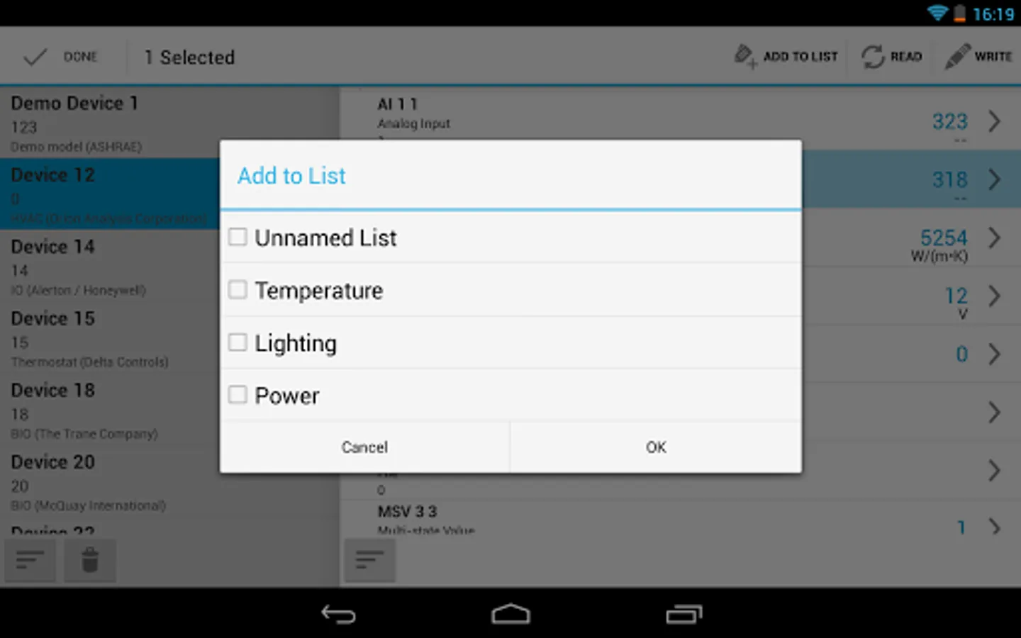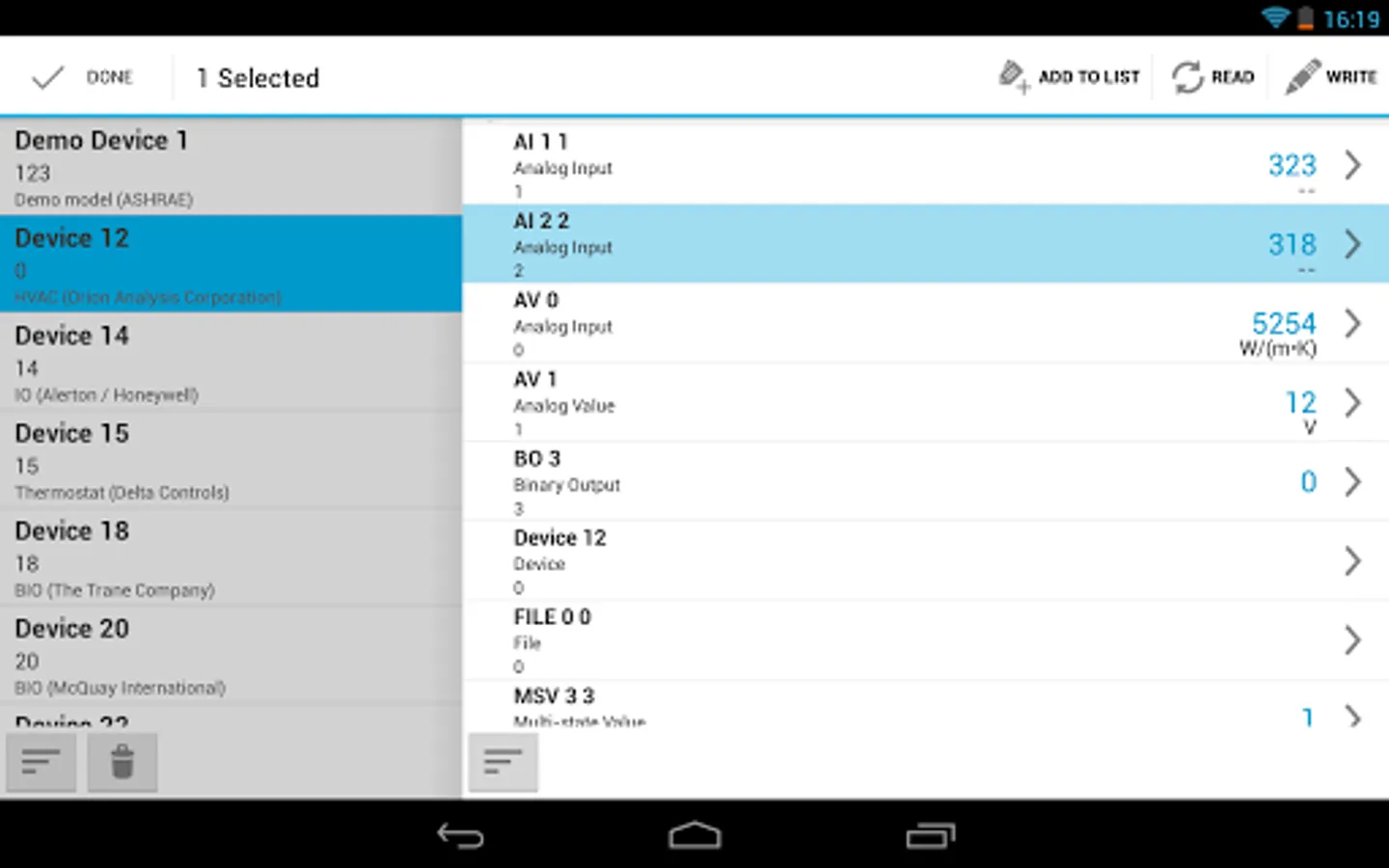 ✔ AtomicReadFile, download BACnet object file to the SD Card of your Android device.