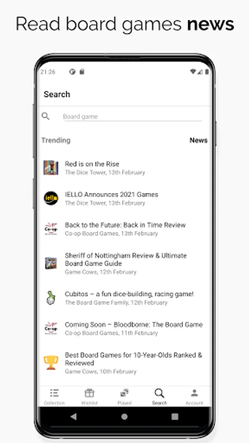 > Follow board games news with The Dice Tower, Opinionated Gamers, Board Game Quest, Co-op Board Games, Everything Board Games, The Board Game Family, Meeple Mountain, Board Game Halv, Game Cows