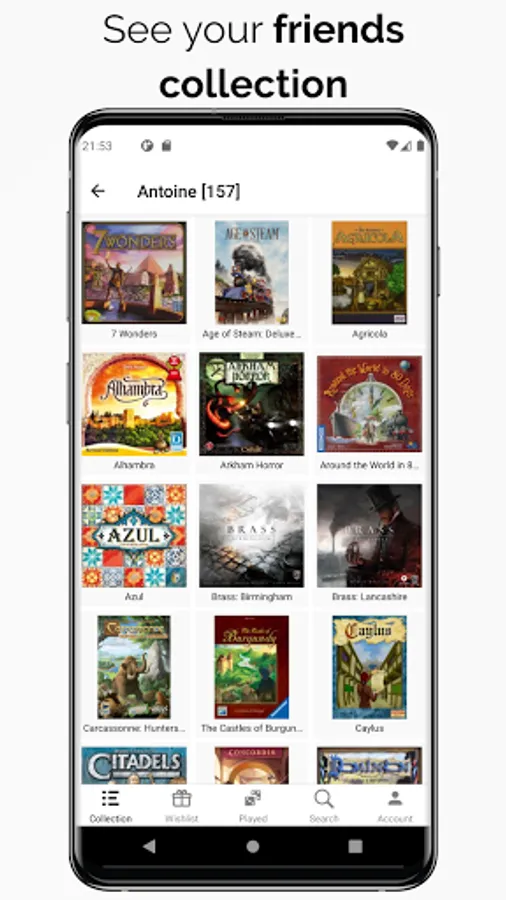 * See your friends' board games collection (friends aka GeekBuddies on BoardGameGeek.com)