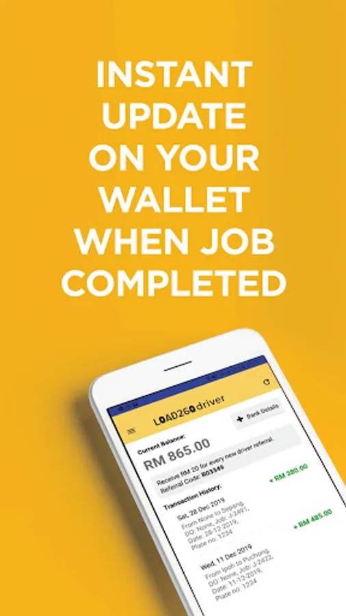 LOAD2GO is an on-demand app to deliver goods/products in Malaysia & Singapore. Load2go uses smartphone app to connect businesses and individuals who require deliveries. Our goal is to ensure a win-win transaction for our customers and drivers, that is why it is our main mission to partner only with the best drivers. Be your own boss and earn money anytime, anywhere.