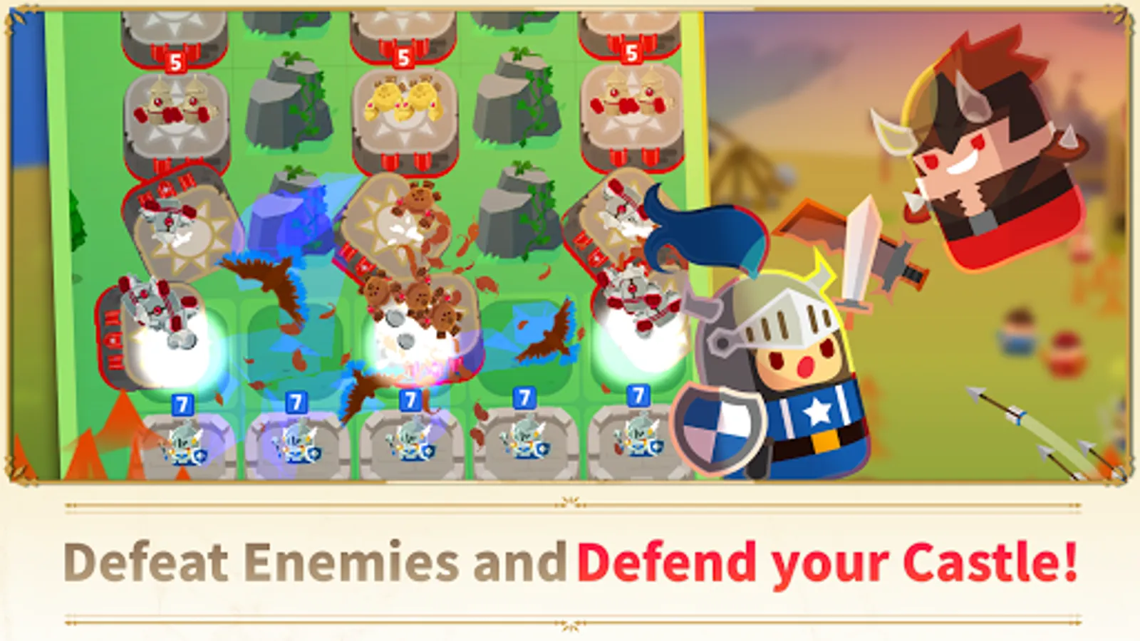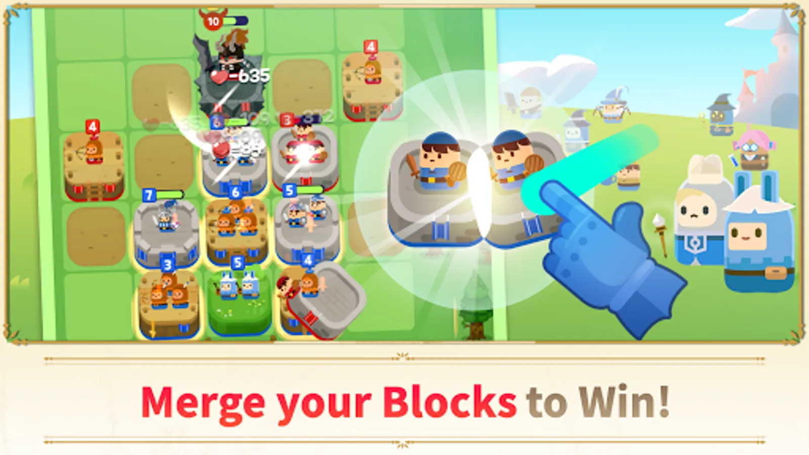 - In this game, one can be stronger than two—even three! Merge your blocks on the battlefield whenever you can to create formidable troops.