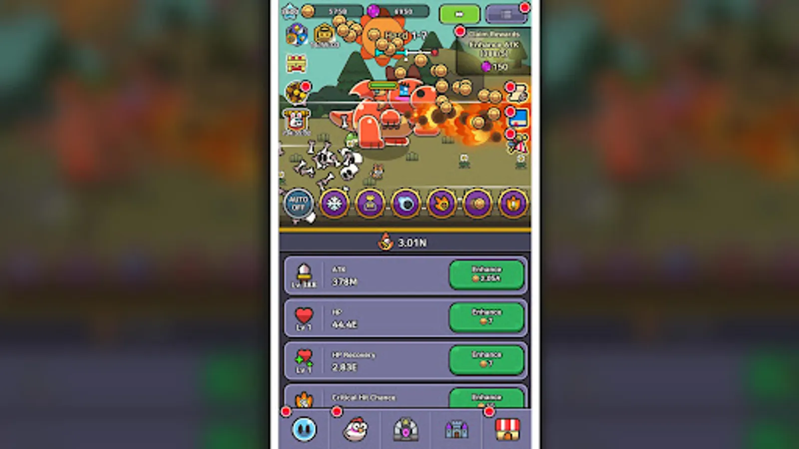 The auto-battle system with idle clicker gameplay enables you to continuously earn more coins for improving your slime’s attack, blood, recovery, attack speed, and experience gaining efficiency, which makes your adventure easier. Fight an idle war in this free RPG and enjoy mobile gameplay at its best.