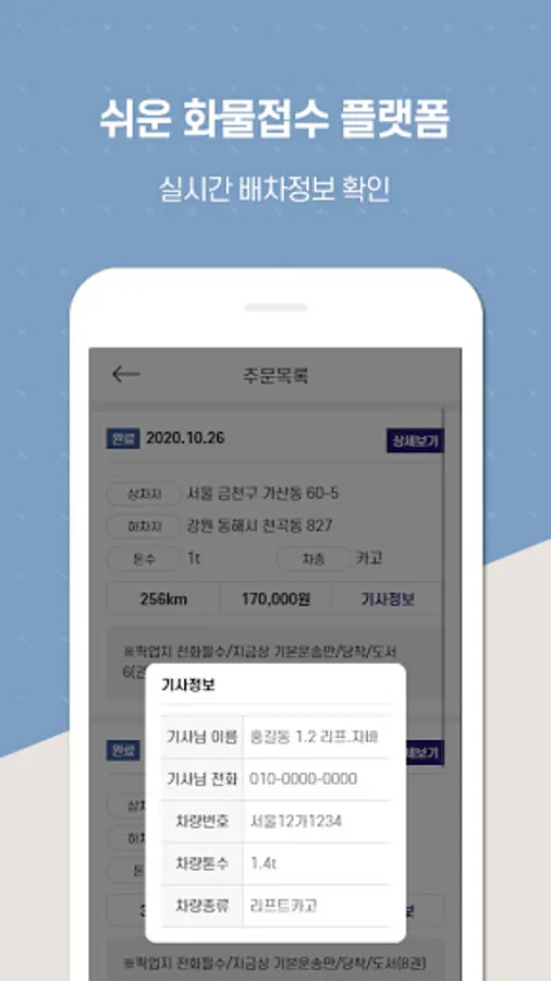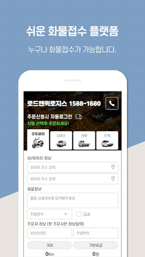 Motorcycle, Labo, Damas, and various types of vehicles ranging from 1 to 25 tons can be dispatched, and cargo can be inquired in real time.