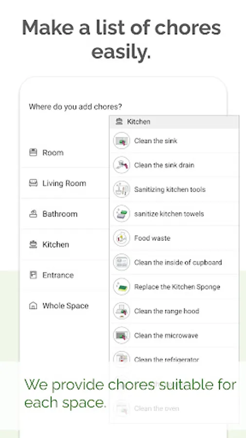 You can easily create a list of chores because it recommends a list suitable for each room. Enter the cycle of housework. This app will tell you the daily household chores. In this app, you can also use a list in which the cycle has been entered in advance.
