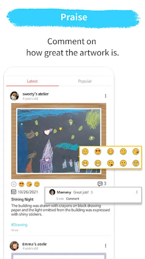 Do you want everyone to see your children's work? Show everyone your kid's work. When you post the artwork, other friends can see your kid's work.