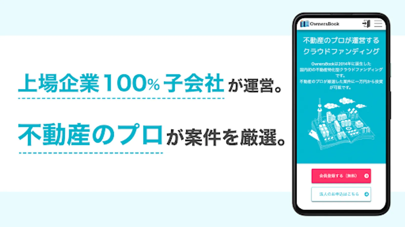 With OwnersBook, you can invest from 10,000 yen in projects carefully selected by real estate professionals.
