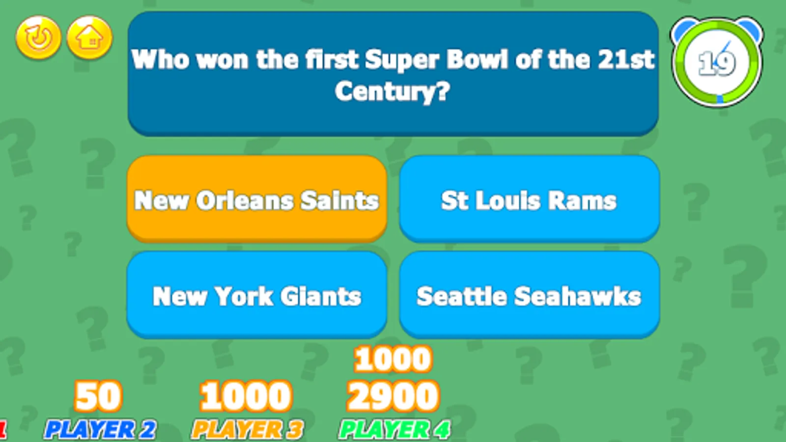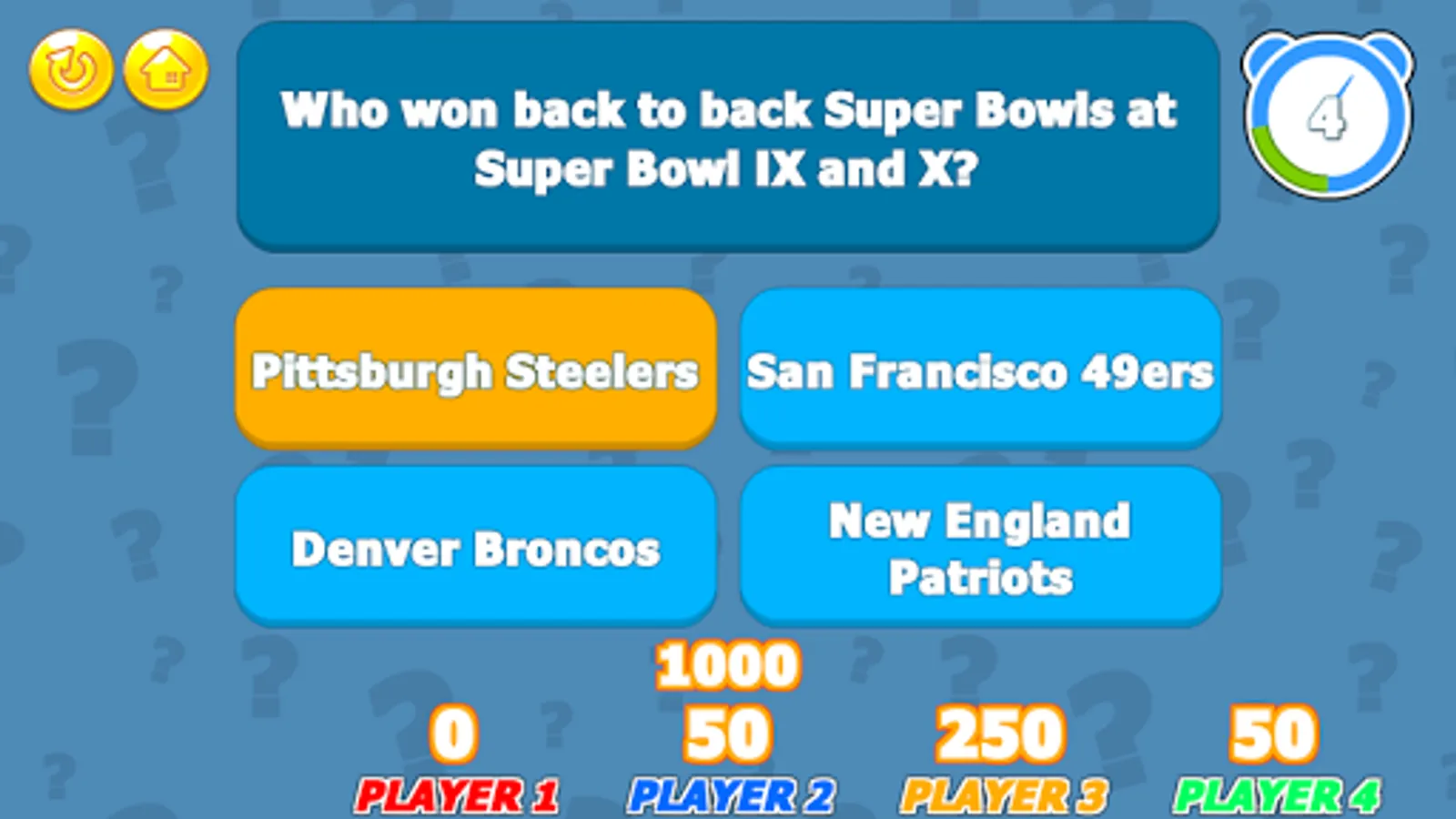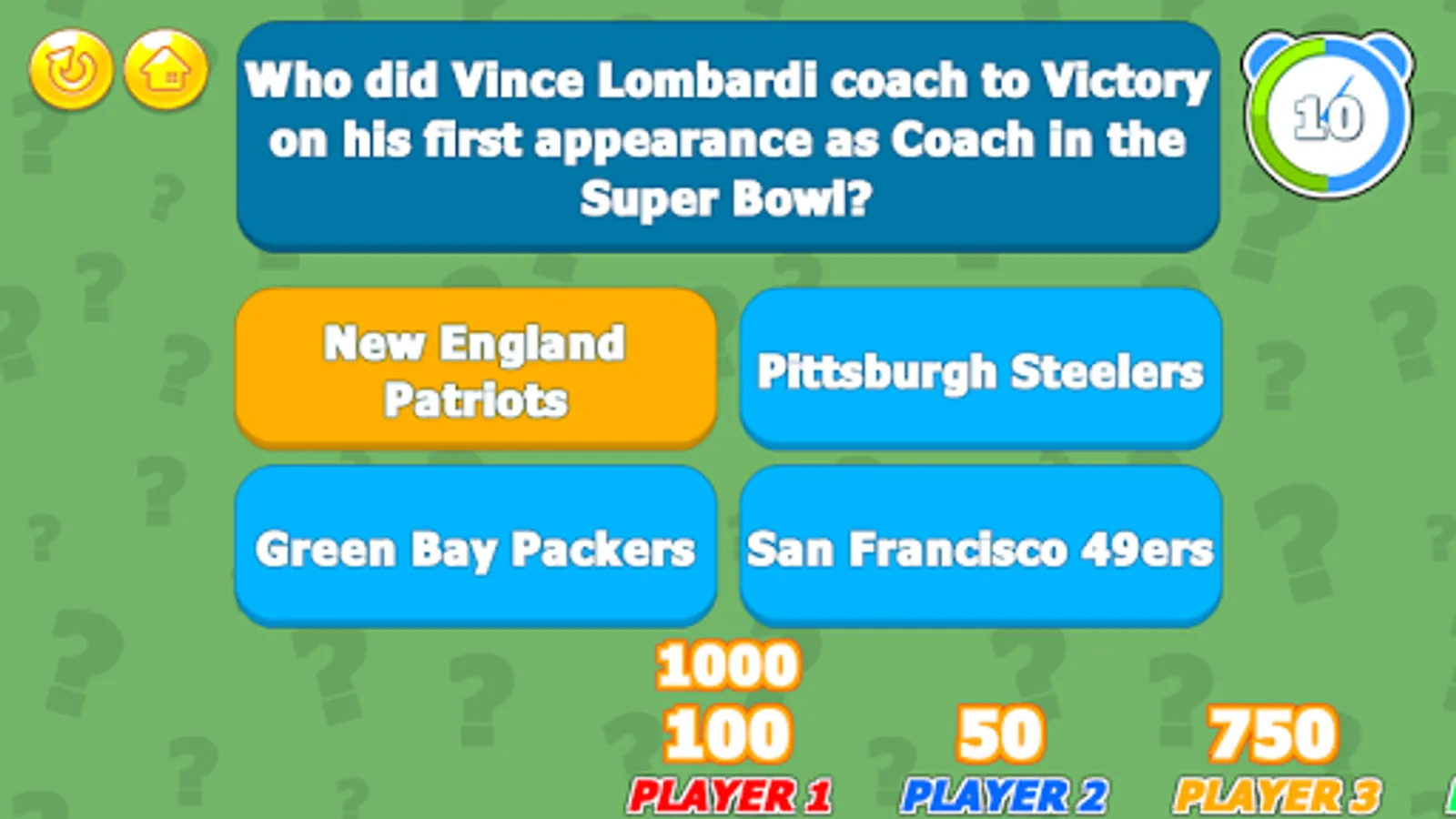 Super Bowl Trivia has never been so much fun. Challenge yourself or have a Super Bowl Trivia night with friends and family in Party Mode!