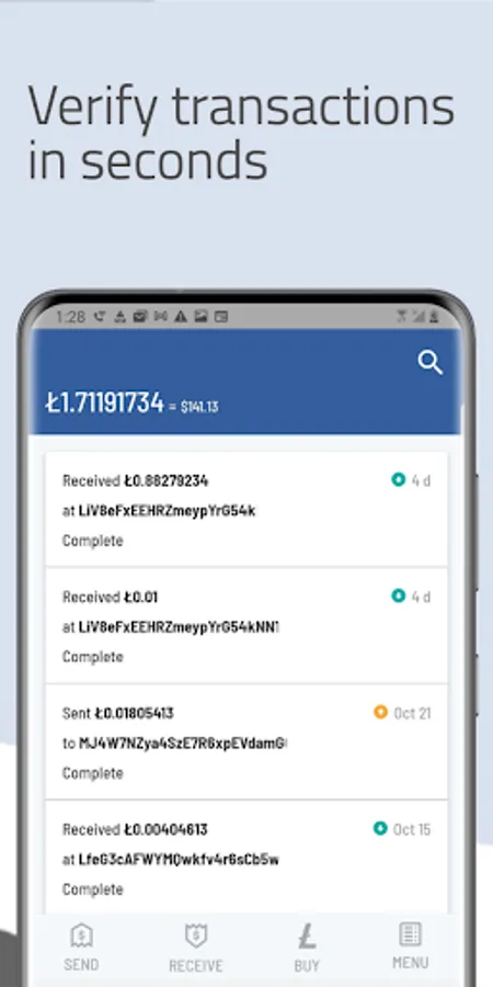 • Backup and recover your wallet on any device with the 'recovery phrase' generated by the app. Even if you lose your phone you will not lose your Litecoin.