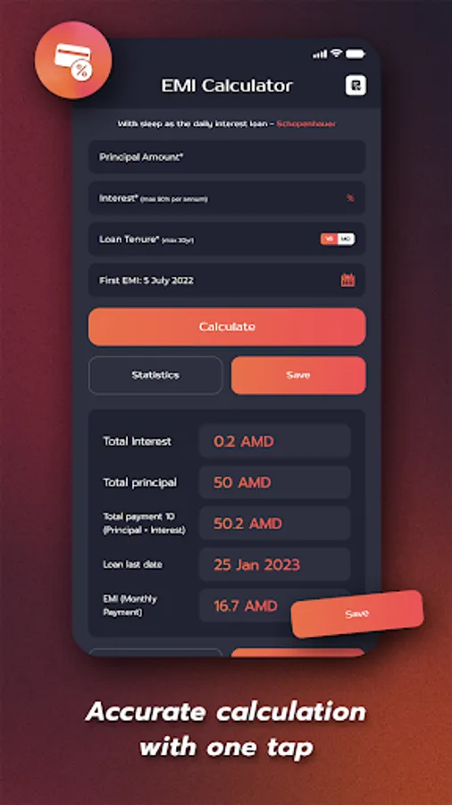 Accurate and Instant Calculations: With the app's algorithms, users can get accurate EMI calculations instantly, without the need for complex mathematical formulas.