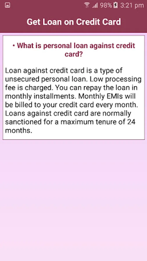 credit card loan apply app is fully guide app that allow user to help applying loan on credit card from various financial institution or bank cards.