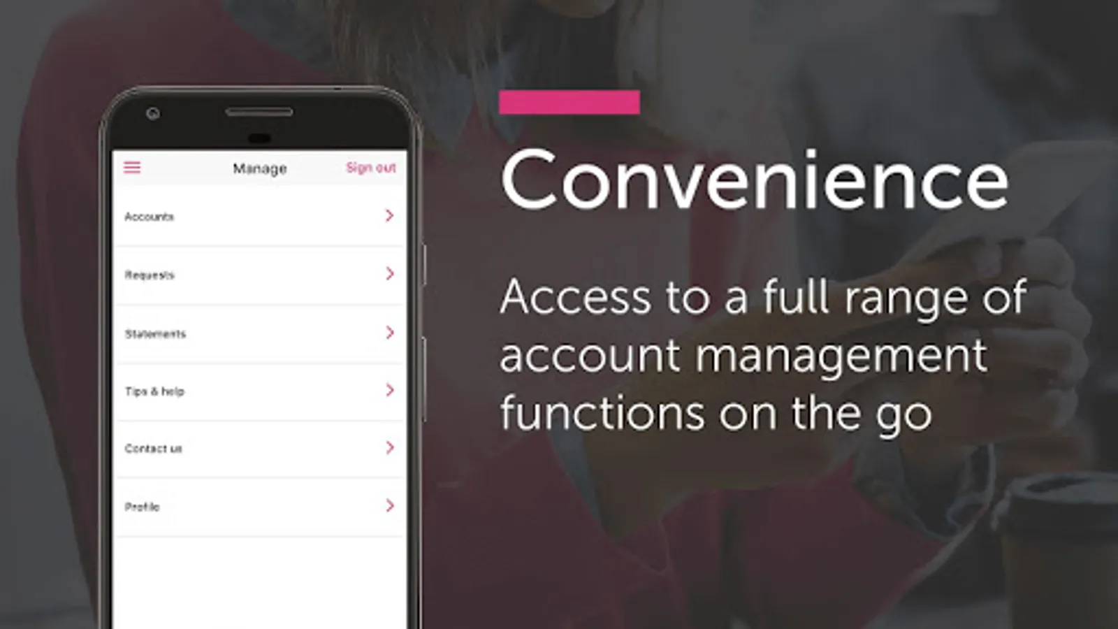 • See your balance, access your accounts, transfer money and pay bills