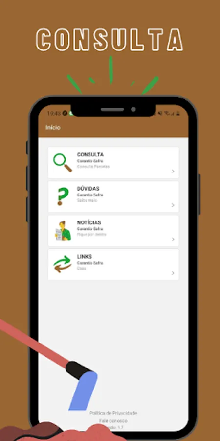 Using the application Garantia-Safra | Consultation You have access to Crop-Guarantee information in an easy, practical and fast way.