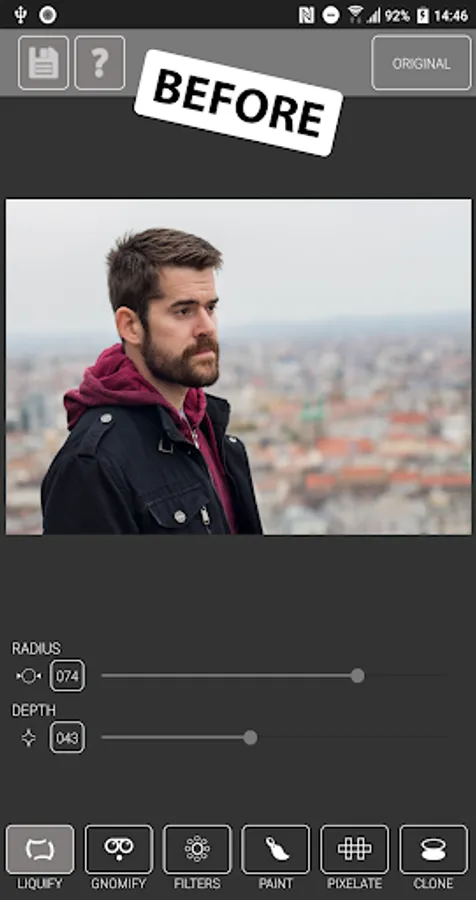 - Liquify - You can deform your image in a circle area. Grow it bigger or make it smaller in a radius of circle.